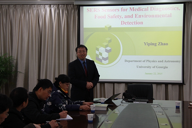 2015年1月22日上午九点半,美国佐治亚大学赵奕平教授学术报告会在物电学院四楼学术报告厅举行, 此次报告会由ALT&EI协同创新中心办公室主任韩彩芹老师主持,协同创新中心、先进激光材料与器件重点