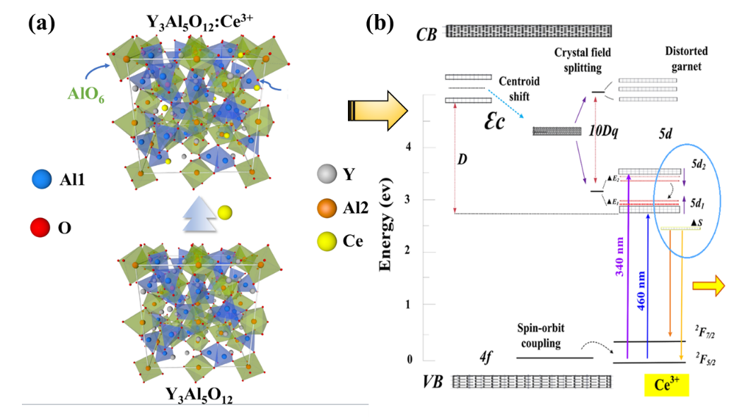国家《“十四五”规划和2035远景目标》明确将“高效照明产品”作为发展绿色经济的重要组成部分。在半导体照明“十三五”规划中,更是将研制“超高能效、高品质、全光谱半导体照明核心材料”作为“首要急需攻克的重大共性关键技术”。目前传统荧光粉的有机涂覆层在高功率下极易色度漂移、光衰甚至高温碳化而失效;在新型转换材料中,荧光陶瓷以其高效率、高热导、结构设计灵活等突出优势,成为最具潜力的技术方案之一。本论文系统综述了先进稀土光电功能材料团队基于“能带工程”、“缺陷工程”和“结构工程”学术思想,开展的发光中心配位环境调控、微观/宏观缺陷协同优化和精密成型融合光学设计等创新策略实现全光谱、高光效和高热稳定性荧光陶瓷设计、制备以及应用方面的研究进展。特别是针对目前激光照明器件尚无检测标准和评估方法的瓶颈难题,明确了相关概念,提出了涉及光学性能、热学性能和可靠性等的有效测量方法。本论文的发表旨在发展新型稀土激光荧光材料,加强稀土新材料前沿技术基础、工程化与应用技术创新,促进我国激光照明产业的创新发展。
