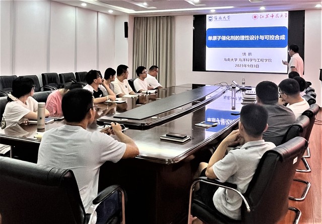 2023年9月3日下午,受江苏师范大学物理与电子工程学院邀请,海南大学饶鹏副教授来我院学术交流,在物电学院428会议室作了题为“单原子催化剂的理性设计与可控合成”的学术报告,报告会由赵新生教授主持。