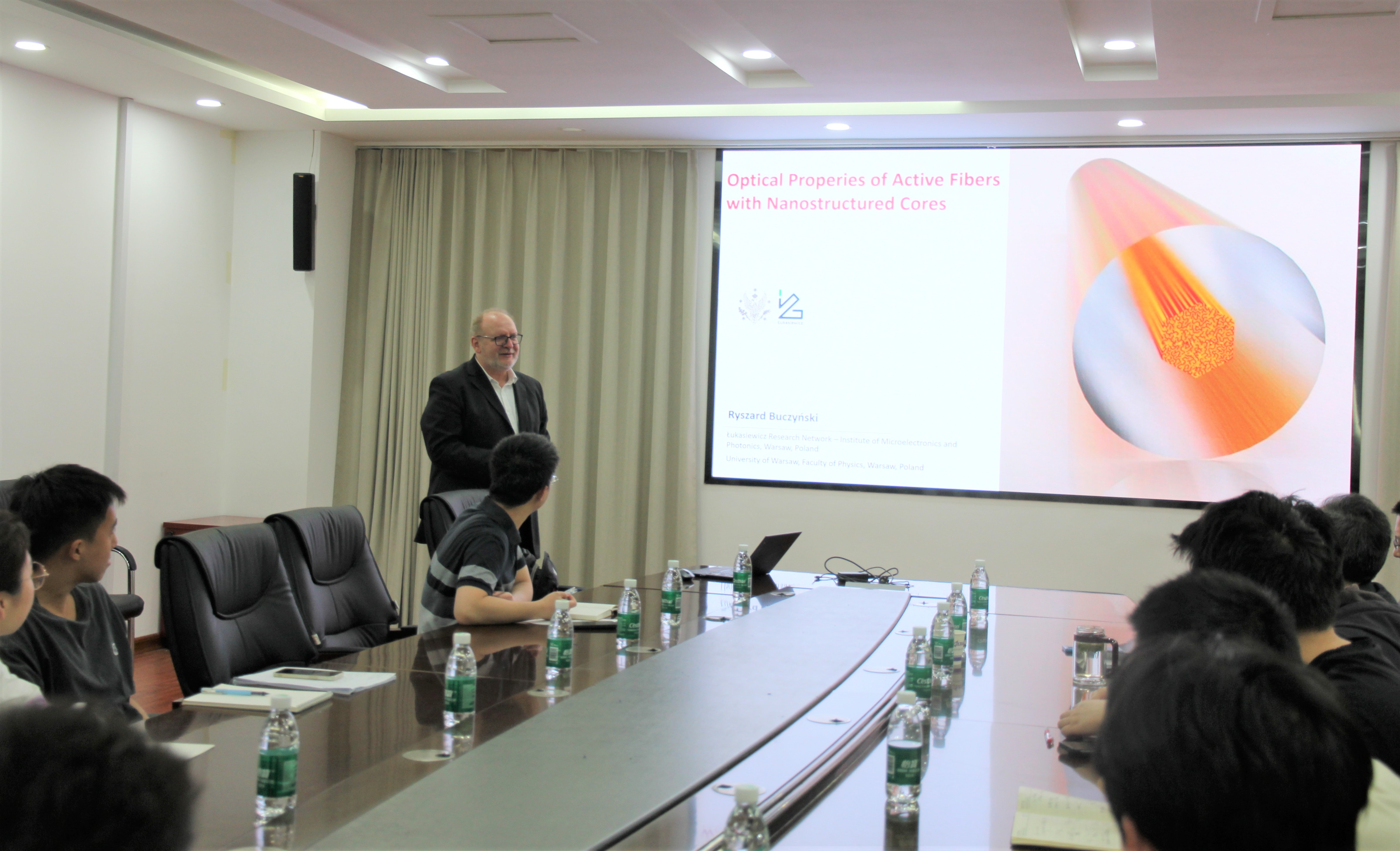 首先,沈德元教授向大家介绍了Ryszard Buczynski教授研究经历和研究方向,Ryszard Buczynski教授,波兰华沙大学博士生导师、物理学院光子学系系主任、IMTE孵化公司联合创始人。在光纤光学、光电子学、光流体学等方面进行了长期深入的研究,并在Photonics Research、Journal of Lightwave Technology等上发表论文300余篇,多项研究成果获波兰教育和科学部部长奖、波兰未来产品成就奖、华沙大学科学成就奖等,多次应邀在国际重要学术会议作特邀报告。