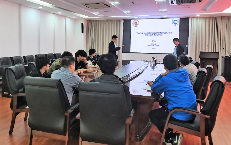 2024年5月7日上午9:30,受江苏师范大学物电学院邀请,海南大学杨玮枫教授应邀来我院交流,在428会议室进行了题为“Tracing spatiotemporal information in ultrafast dynamics”的报告,报告会由李印威教授主持,我院部分老师及同学参加了报告会。